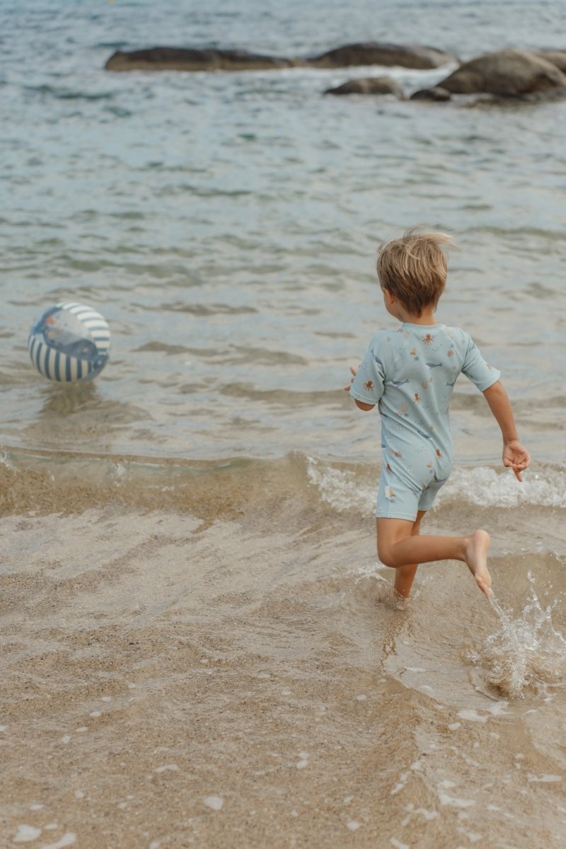 Beschrijving Reviews Over dit product Laat je kleintje op ontdekkingstocht gaan met het Ocean Friends zwempak! Dit korte-mouwen zwempak is versierd met lieve walvissen, vrolijke visjes en nieuwsgierige krabbetjes en nodigt uit tot eindeloos waterplezier. Kenmerken: Kleur: Groen met zeedierenprint Materiaal: 94% gerecycled nylon / 6% spandex (zachte waffelkwaliteit) Comfortabel, zacht en rekbaar voor optimale bewegingsvrijheid Lange rits: Gemakkelijk aan- en uit te trekken UPF40+ zonbescherming voor de huid Onderhoud: Wassen op 30 °C programma voor fijne was, niet strijken, niet chemisch reinigen, niet bleken, niet geschikt voor wasdroger Een praktisch, stijlvol en veilig zwempak dat elk wateravontuur een feestje maakt Trustpilot